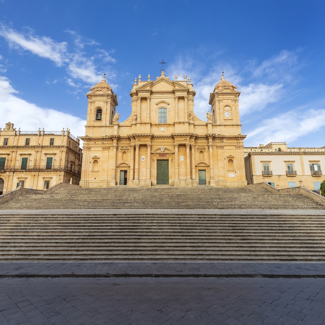 È una delle città più belle della Sicilia e offre un panorama architettonico unico al mondo per l’unità e l’armonia di uno stile barocco dal carattere solare e floreale. Il colore rosato della pietra utilizzata per costruire la città la rende unica nel suo genere. Ogni cosa, anche la più minuta conserva una sua grazia “barocca”. A Maggio merita una visita la cosiddetta Infiorata, una volta l’anno, le strade della città di Noto si trasformano in un tripudio di fiori colorati che attraggono migliaia di visitatori.